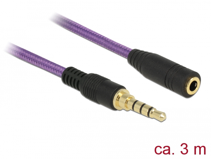 Delock Prodlužovací kabel audio stereo jack 3,5 mm samec / samice iPhone 4 pin 3 m fialový 85625