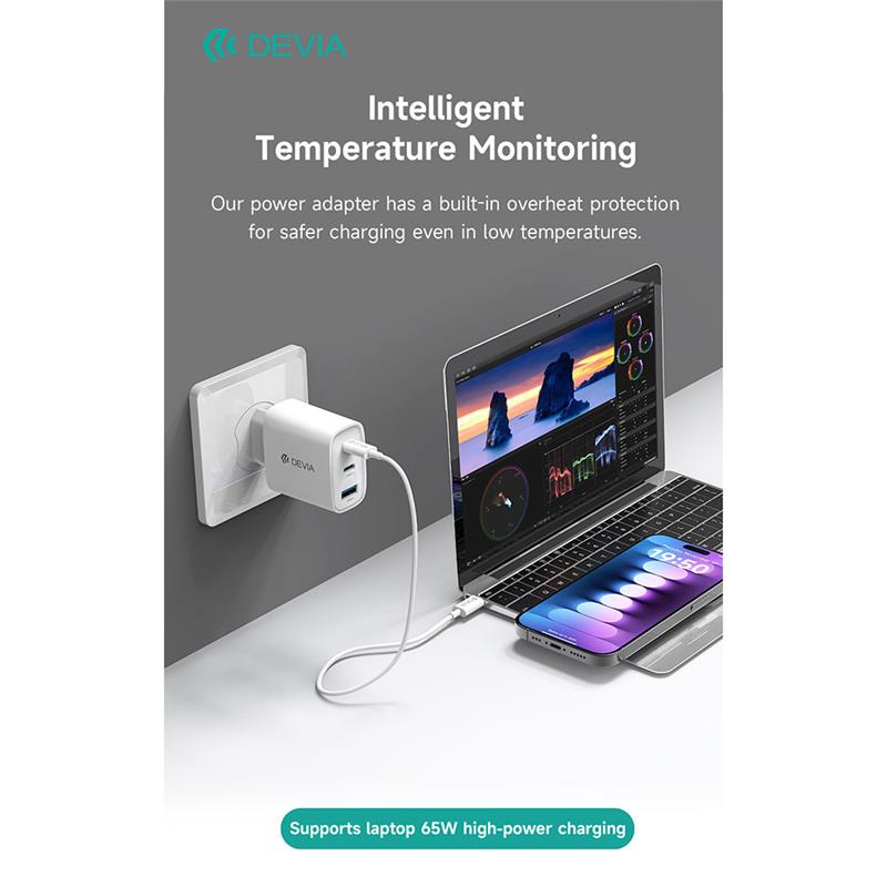 Devia sieťová nabíjačka Extreme Speed GaN PD 2x USB-C/USB-A 65W - White 6942297111615
