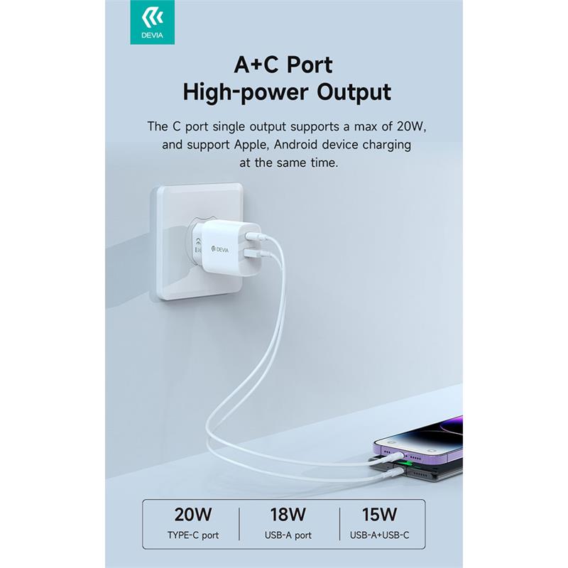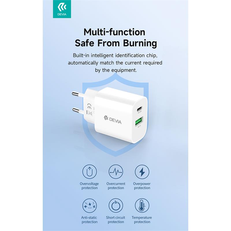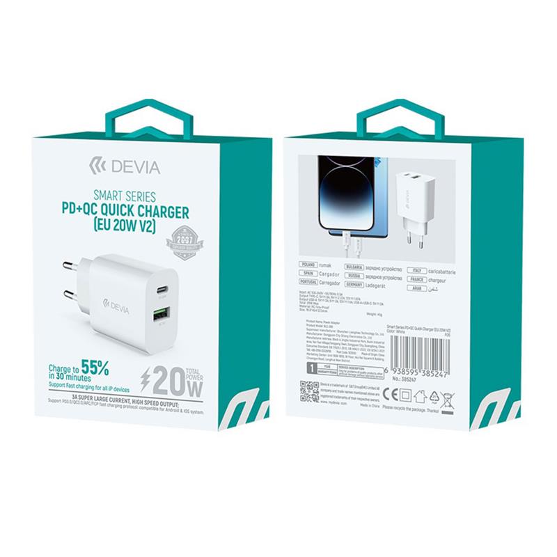 Devia sieťová nabíjačka Smart Series PD& QC 20W V2 - White 6938595385247