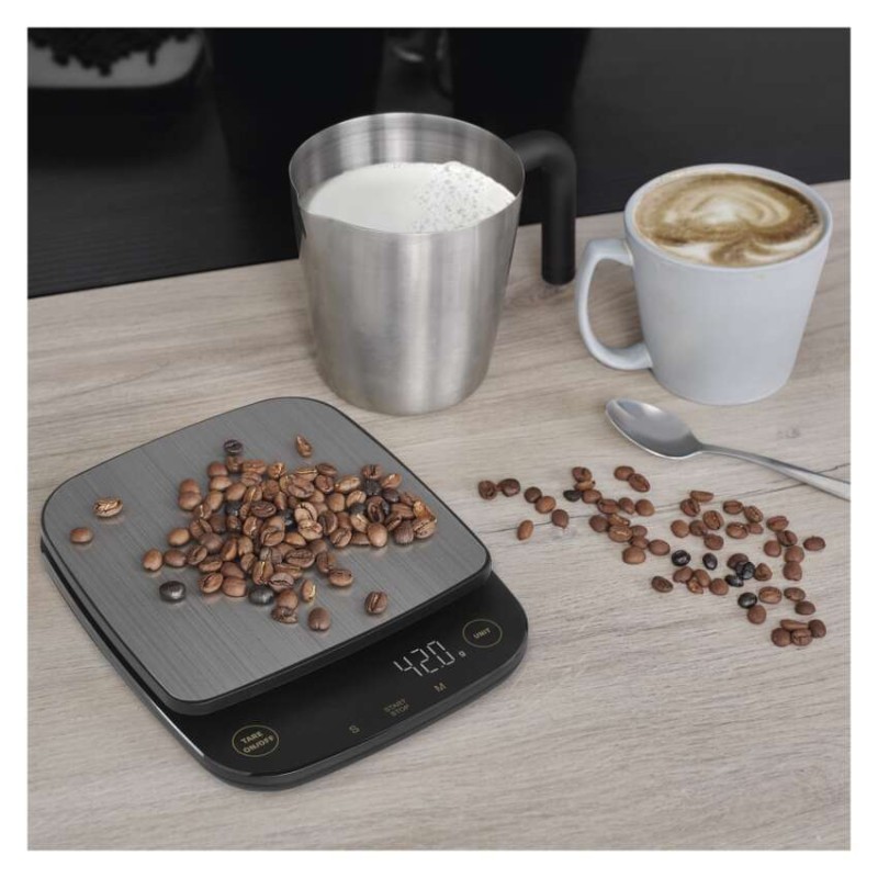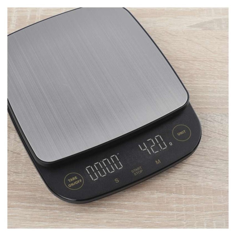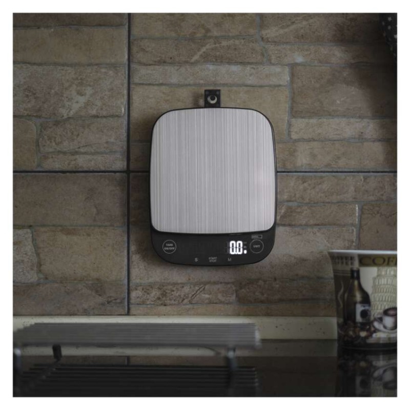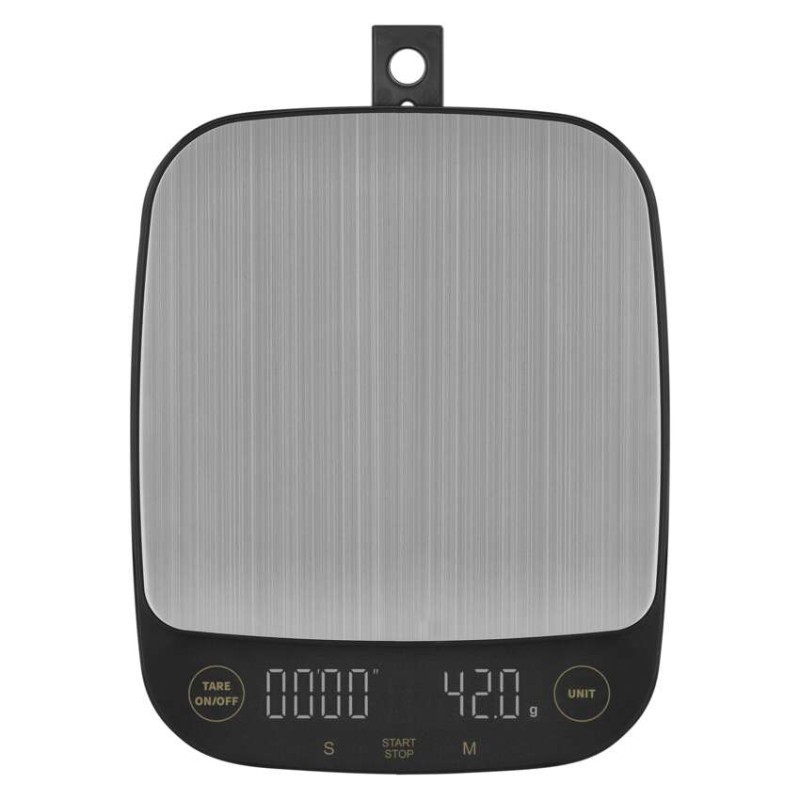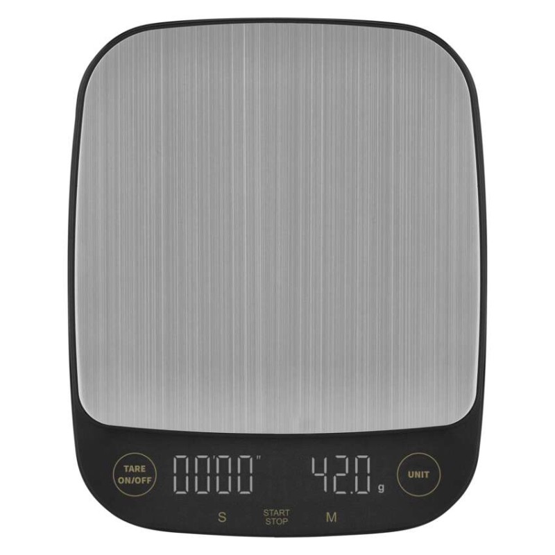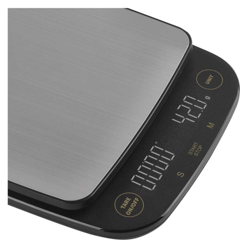automatické vypnutie: po 1 minúte|Bluetooth: nie|BMI index – meranie tuku, vody a svalovej hmoty: nie|farba: čierna|funkcia dovažovania: áno|indikácia slabých batérií: áno|indikátor preťaženia: áno|jednotky váhy: g, lb, oz|LCD displej: áno|max. záťaž: 3 kg|napájanie: 3× 1,5 V AAA (súčasťou balenia)|pamäť: nie|podsvietený displej: áno|povrch váhy: ABS plast + nerez|predajný obal: 1 ks, krabička|presnosť váženia: 0,1 g|produkt: kuchynská váha|rozmer: 154 × 28 × 190 mm
