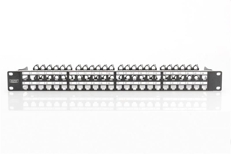 DIGITUS 19" modulárny patch panel 48port 1U vhodný pre UTP i STP keystony, čierny RAL9005 DN-91424