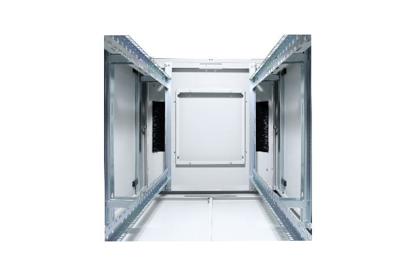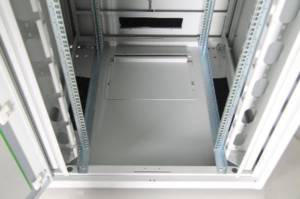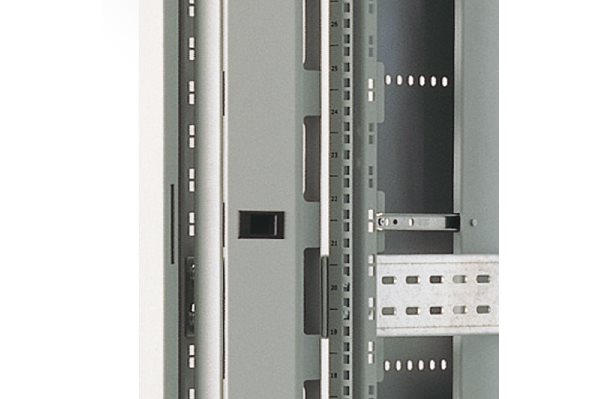 cabinet is equipped with galvanized 483 mm (19”) profile rails, mounted left and right on the front and rear side. They are