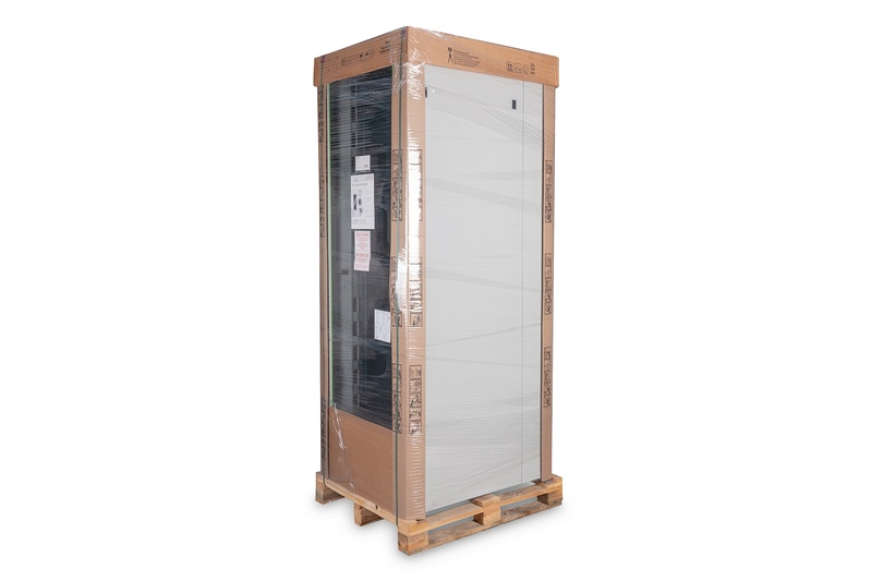 Each cabinet includes lockable glass front door, lockable steel back door and lockable side panels. Furthermore 2 sets of