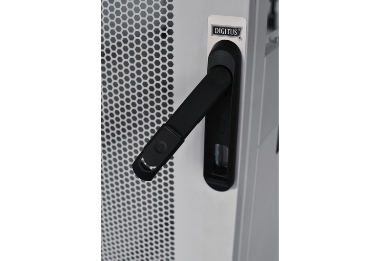 The DIGITUS® Server Cabinet Unique Series is designed and produced for the safe housing of server equipment. They provide maximum optimization resulted to an optimum performance in between quality and added value. Each cabinet is designed with strength, ease of use and aesthetics in mind. The Unique Series is available in 4 heights, from 26 units up to 47 units, and a choice of either 600mm or 800mm widths, depth is 1000mm. The Unique Series is ideal for small and mid size server rooms through to multi Datacenter installations. The strength of the cabinet is the modular frame construction, which makes the cabinet very robust. Key elements include air flow (high perforation 63%) and cooling management (ventilation). The Unique Series ensures easy access to equipment due to quick release side panels as well as the front and rear door. Each cabinet consists of two sets of heavy duty 19" mounting profiles, which can be adjusted throughout the depth of the cabinet. Between these profiles are 4 sets of front to rear strength members. The Series come up with a carrying capacity up to 1000 kg. The swing handle lock incorporates a 4-point lock on front and a 3-point lock on back side of the cabinet. All in all the Unique Server cabinet is the perfect solution for your server room.