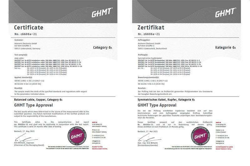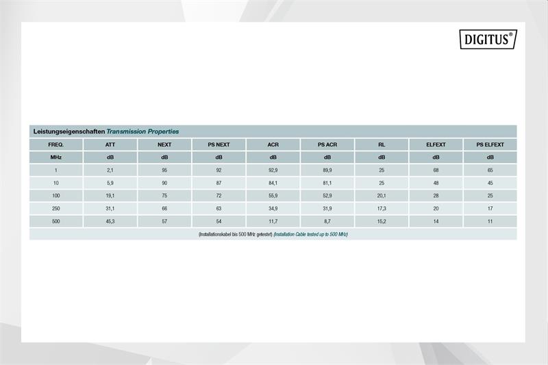 Category 6A compilant, ISO/IEC 11801, TIA/-586-C.2, EN 50173