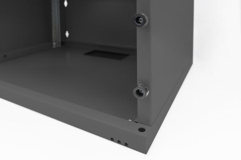 Síťové rozvaděče 483 mm (19”) pro nástěnnou instalaci ze série SOHO se pro optimalizaci nákladů dodávají nesmontované pomocí plochého balení. K dispozici ve čtyřech rackových jednotkách a vybavených celoskleněnými dvířky a kabelovým vstupem s kartáči na střeše a podlaze, je to perfektní produkt pro rozdělení nebo vybudování malé až středně velké sítě. Uvnitř jsou instalovány dva páry pozinkovaných profilových lišt 483 mm (19”) označených snadno čitelnými regálovými jednotkami. Jejich hloubku lze upravit. Každá skříň je vyrobena z ocelového plechu o tloušťce až 1,5 mm. Barvení je provedeno elektrostatickým práškovým lakováním ve standardních barvách šedá (RAL 7035) nebo černá (RAL 9005). Panty dveří lze přepínat. Instalace zabere jen několik kroků a je extrémně snadná díky přiloženým instrukcím krok za krokem.