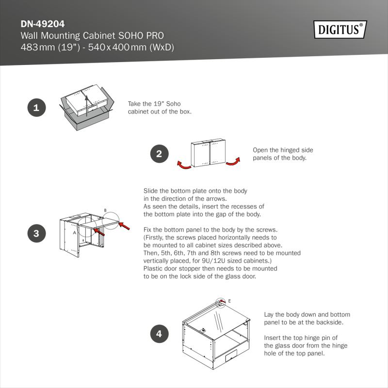Nástěnné pouzdro DIGITUS® řady SOHO PRO se vyznačuje efektivní dodávkou v optimalizovaném plochém balení a zvláště uživatelsky přívětivou instalací.