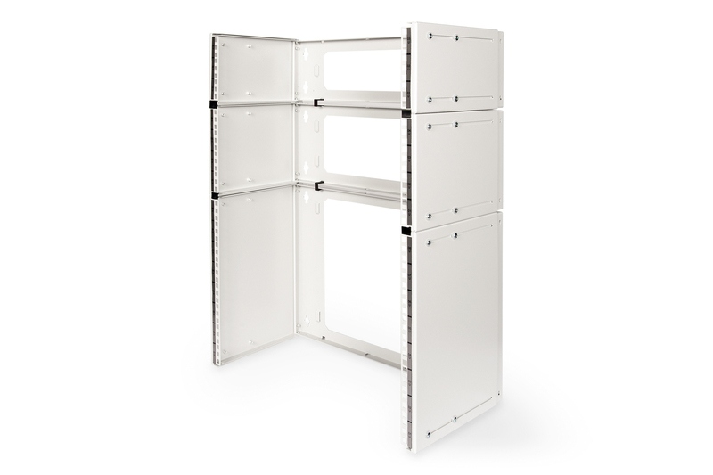 Ecoline 4U 19" Wall Mounting Patch-Bracket, unmounted, flatpackage rozměry šířka 485 * výška 180 * hloubka 220 až 350 mm • High quality, cost effective and cost economical solution • Adjustable in depth • Hinged, rotable • Housing for 19" patch