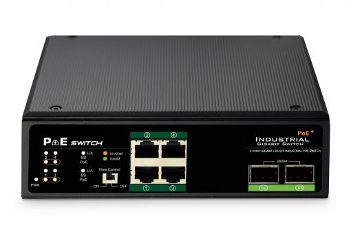 DIGITUS Industrial Gigabit Ethernet PoE+ Switch 4-port PoE + 2-port SFP, 802.3at, DIN rail DN-651109