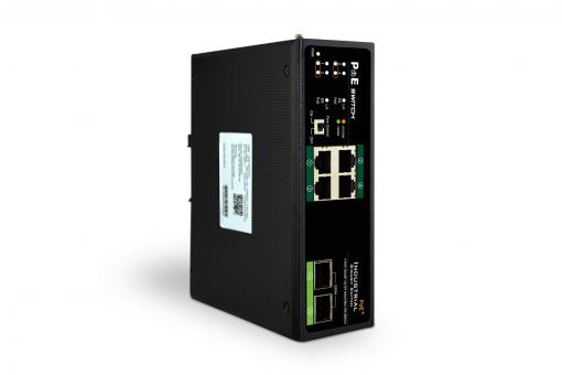 Průmyslový 4-portový gigabitový přepínač PoE s 2x porty pro uplink SFP