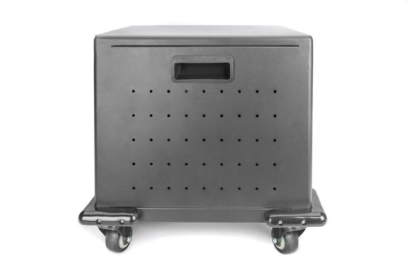 Mobilní nabíjecí skříň od DIGITUS® je ideálním a kompaktním řešením pro ukládání a nabíjení vašich přenosných zařízení, jako jsou notebooky a tablety. Mobilní nabíjecí skříně se často používají ve veřejných zařízeních, jako jsou školy, aby bylo možné bezpečně uložit zařízení na centrálním místě a zároveň je nabíjet. Součástí skříně je 16 nabíjecích stanic, z nichž všechny mají na přední straně vlastní USB připojení. Instalované ventilátory (24 V) kombinované s ventilačními štěrbinami zajišťují aktivní chlazení skříně.