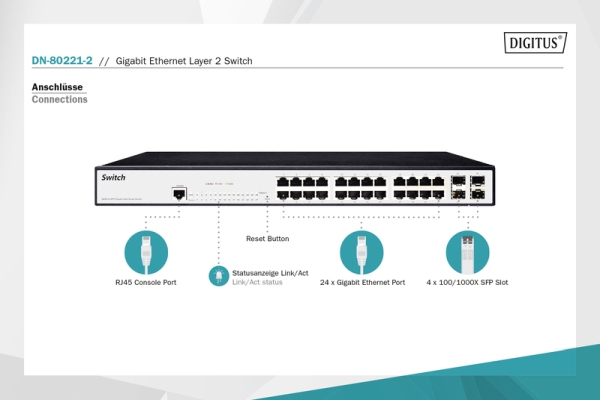 DIGITUS Professional Gigabit Ethernet Layer 2 Switch, 24 port with 4 SFP ports DN-80221-2