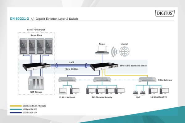 The DIGITUS® Gigabit Ethernet Layer 2 Switches with SFP ports are designed for medium to large network systems. They provide smart features that are ideal for simple QoS/CoS applications and the 19'' size makes an uncomplicated integration into your network possible. The switches are a great choice to improve the performance and efficiency of your network.
