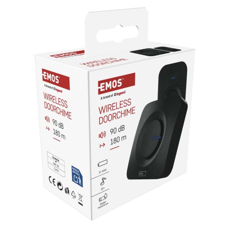 dosah tlačidla: 180 m|farba: čierna|maximálna hlasitosť zvonenia: 90 dB|možnosť pridať ďalšie tlačidlo: áno, max. 6|napájanie hlavnej jednotky: 3× 1,5 V AAA (nie sú súčasťou balenia)|napájanie tlačidla: 1× 12 V A23 (súčasťou balenia)|optická signalizácia na tlačidle: áno|optická signalizácia na zvončeku: áno|počet melódií: 52|počet prijímačov v balení: 1 ks|počet tlačidiel v balení: 1 ks|predajný obal: 1 ks, blister|prenosová frekvencia: 433 MHz|prídavné (náhradné) tlačidlo: P5728T|regulácia hlasitosti: áno, 5 úrovní|špeciálne funkcie: nie|spôsob párovania: automatické párovanie – self-learning|spôsob prenosu: bezdrôtový zvonček|vodeodolné tlačidlo: áno
