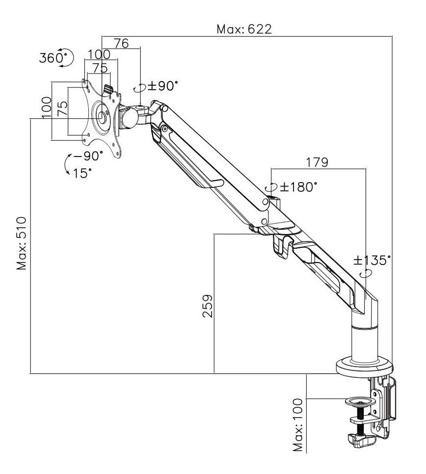 - Držák monitoru s plynovou pružinou pro snadné nastavení výšky - Pro velikosti monitorů 17" až 36" - Možnosti náklonu + 15° / - 90°, natočení + 90° / - 90° a rotace 360° - Rozměry pro uchycení VESA 75 x 75 mm a 100 x 100 mm - Upevnění pomocí svorky ne...