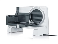 Elektrický krájač , zúbkovaný nerezový rezný kotúč s priemerom 170 mm s bezpečnostným odnímateľným krytom,  úplne nová revolučná konštrukcia, minimálne nároky na miesto,  vysoko stabilné prevedenie s opornou nohou, plastový kryt motora, ochrana proti preťaženiu,  držiak krájaných potravín s plastovou opierkou,  hrúbkou rezu 0 - 20 mm,  oporná doska potravín a vodič vozíka potravín vyrobený z hliníka,  Eco Power Motion motor - úsporný 45W motor s riadiacou jednotkou, ktorý iba pri plnom zaťažení dosahuje príkonu 170W,  pohon sprevodovanie ozubenými kolesami,  držiak potravín, farba biela