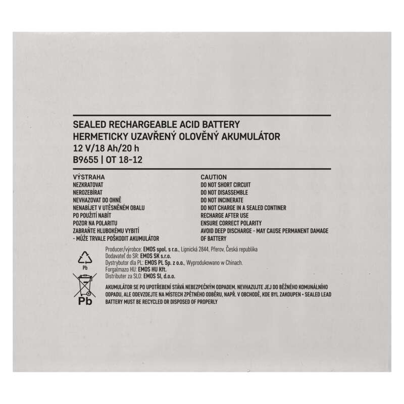 EMOS Bezúdržbový olovený akumulátor 12 V/18 Ah B9655