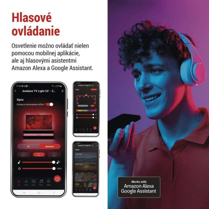 ovládanie hlasovými asistentmi áno (Amazon, Alexa, Google Assistant)