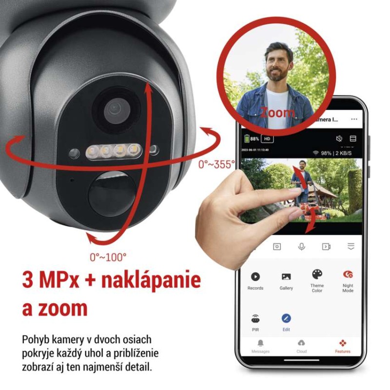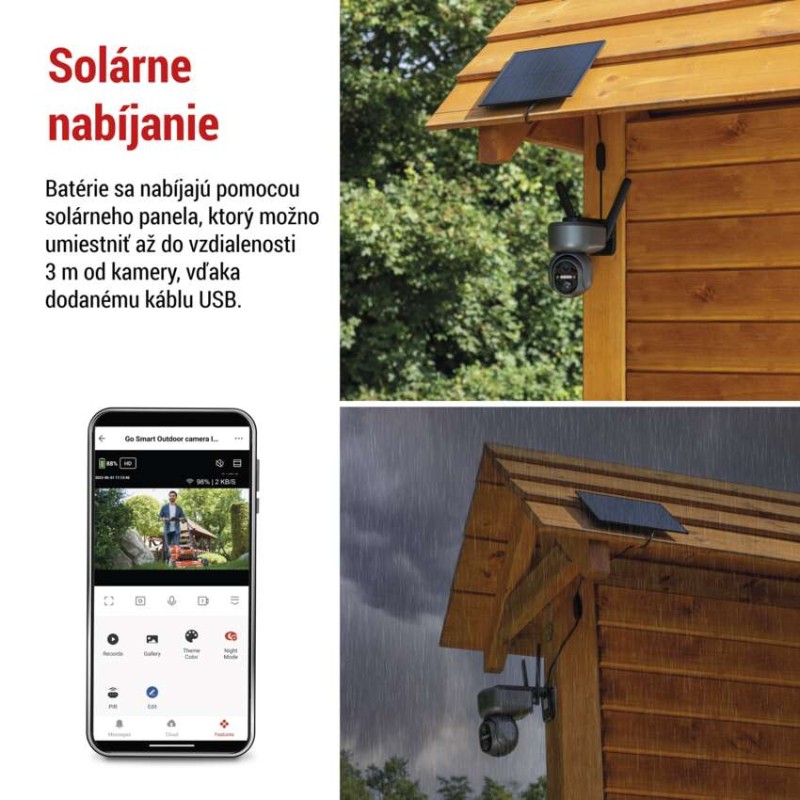 Vonkajšia inteligentná kamera s 4G/LTE pripojením ponúka revolučnú kombináciu funkcií, ktorá zaručuje bezpečnosť a umožňuje flexibilitu pri umiestnení. Vďaka pripojeniu cez mobilnú sieť je možné monitorovať vybranú oblasť kdekoľvek, kde nemáte pripojenie Wi-Fi, ale je tam pokrytie mobilným signálom, napríklad na chate pri lese, včelíne alebo na odľahlých pozemkoch. Majte tak svoj majetok pod kontrolou, nech ste kdekoľvek. Vďaka oznámeniam na vašom mobilnom zariadení môžete reagovať na každú udalosť