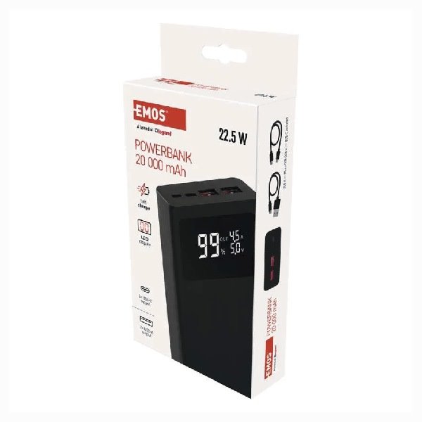 EMOS POWERBANK BetaQ 20, 20 000 mAh, 22,5 W, čierny B0532B