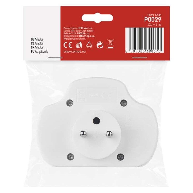 Praktická rozbočovacia zásuvka v bielom prevedení. Ľahko zapojíte viac spotrebičov podľa daného počtu zásuviek. Jej výhodou je vypínač pre jednoduché a rýchle odpojenie od elektrickej siete. Rozbočovacia zásuvka 3x s vypínačom, počet zásuviek: 1x 2P + PE + 2x 2P, napätie/prúd: 250 V/10 A max., krytie: IP20, vypínač: áno