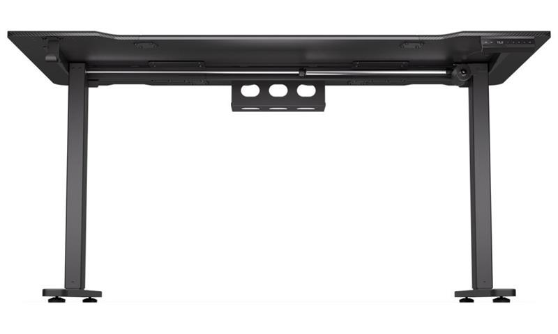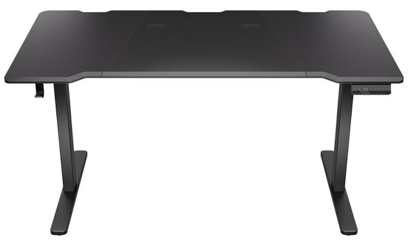Herní stůl o délce 150 cm a šířce 78 cm nabízí dostatek prostoru pro myš, klávesnici a další příslušenství. Výšku lze plynule nastavit v rozsahu 73 - 120 cm pouhým stisknutím tlačítka na ovládacím panelu, který navíc umožňuje uložit až čtyři nastavení výšky. Na spodní straně desky je umístěn systém pro správu kabelů. Maximální stabilitu zajišťuje robustní ocelová konstrukce s nosností až 80 kg. Povrchová úprava desky stolu ve stylu uhlíkových vláken nejen dobře vypadá, ale je také odolná proti poškrábání. V neposlední řadě zajisté potěší kovová polička pro napájecí lištu na zadní straně a háček pro zavěšení sluchátek.