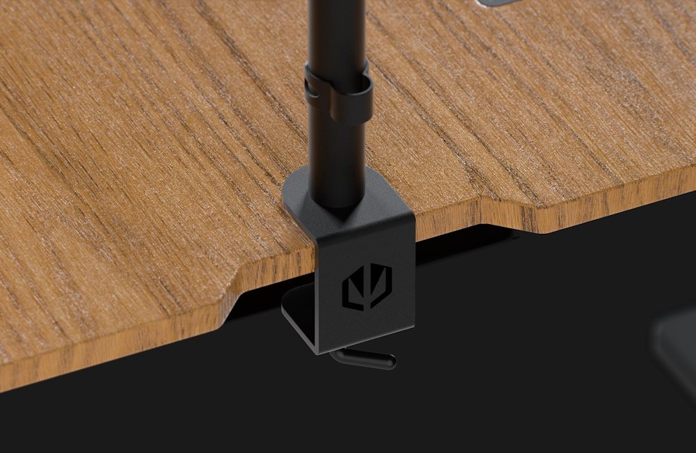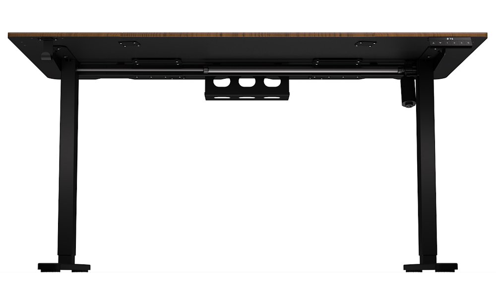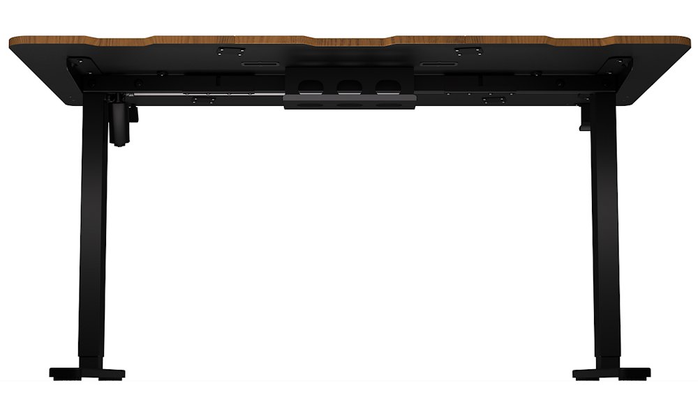 Robustní ocelový rám s práškovou povrchovou úpravou a dodatečnou výztuhou po celé šířce desky poskytuje maximální stabilitu i při plném zatížení. Velká pracovní plocha 150 × 76 cm z kvalitního MDF materiálu s povrchem v dekoru tmavého dřeva unese až 80 kg vybavení a díky precizně tvarovaným hranám nabízí pohodlné a estetické řešení pro minimalistické i plně vybavené pracoviště.