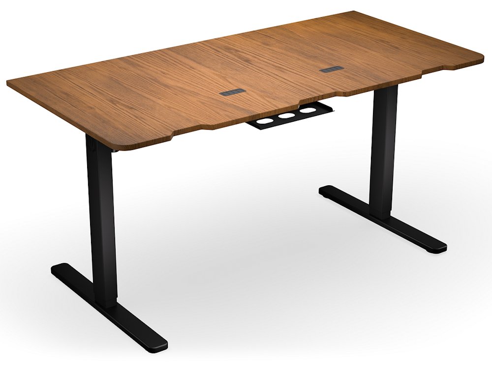Herní stůl, motorizovaný, výškově stavitelný, cable management, 150×76cm, nosnost 80kg, hnědo-černý