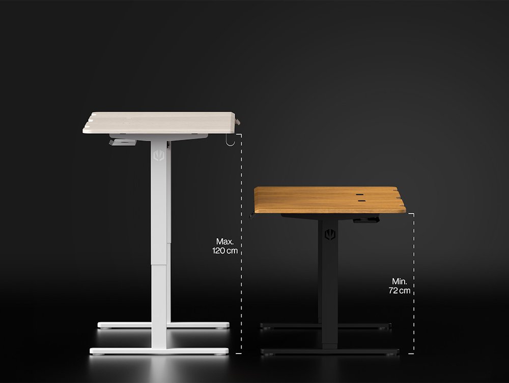 Elektricky nastavitelný pracovní stůl spojující elegantní design s precizní ergonomií a funkčností.