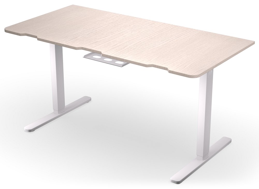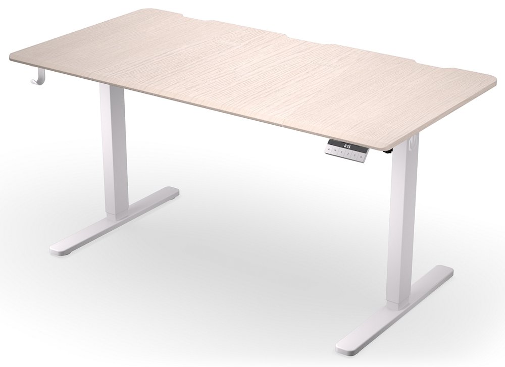 Elektricky nastavitelný pracovní stůl s plynulou regulací výšky 72–120 cm, dotykovým panelem s pamětí 3 pozic, odolnou MDF deskou 1500 × 760 mm s nosností 80 kg a elegantním designem v dekoru světlého dřeva.