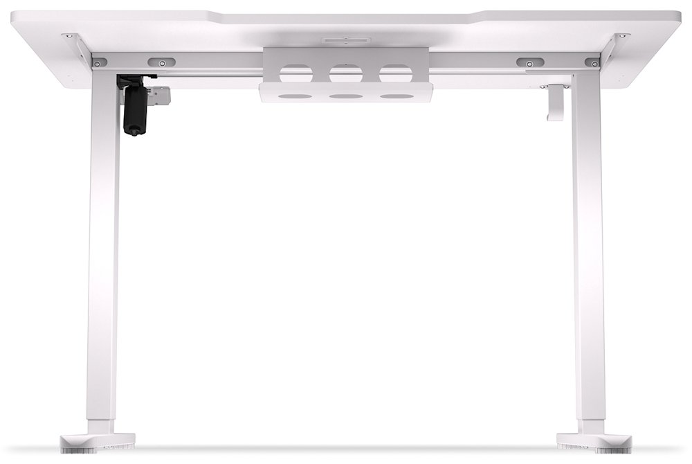 Herní stůl, motorizovaný, výškově stavitelný, cable management, 114×60cm, nosnost 50kg, bílý