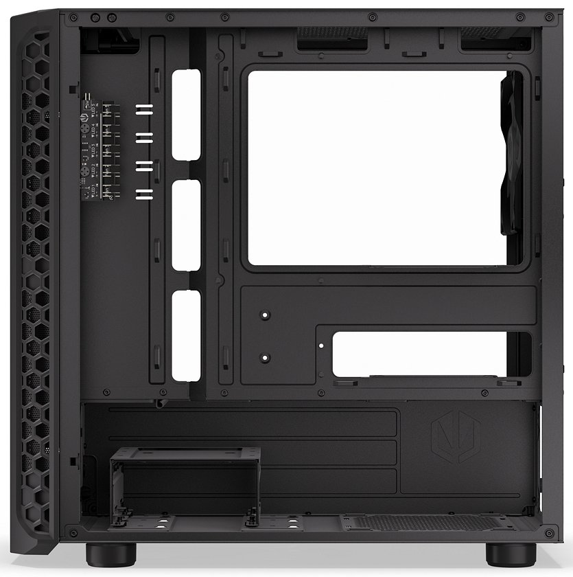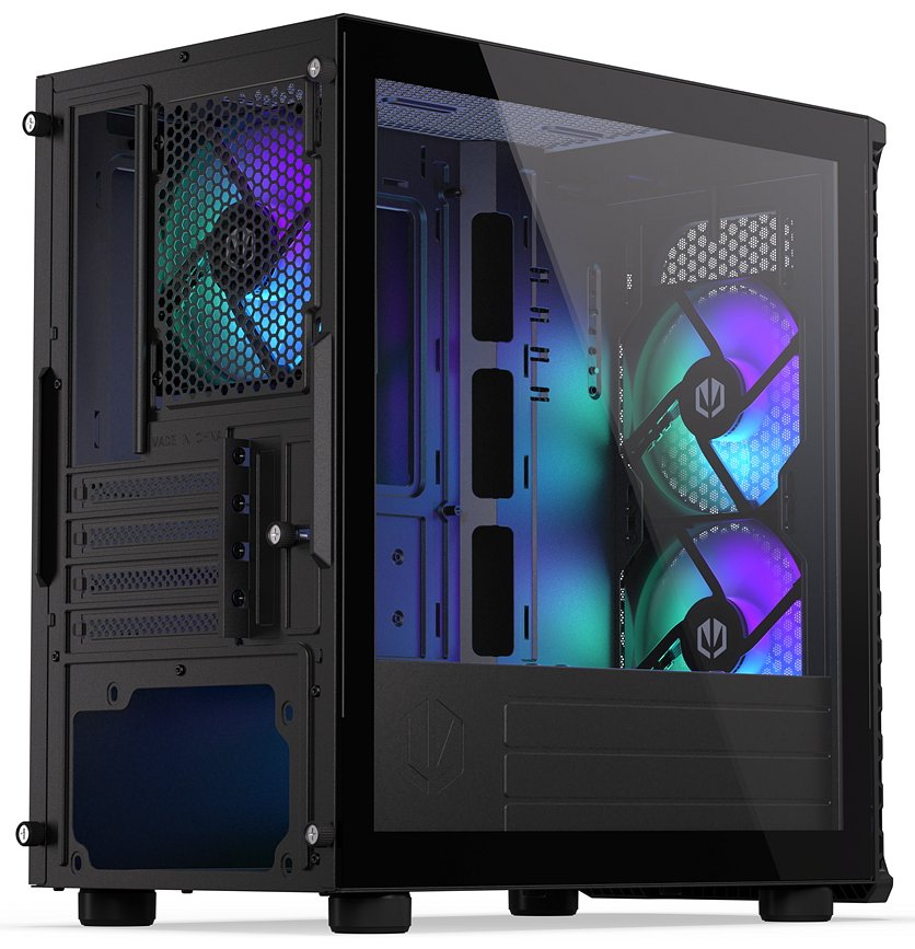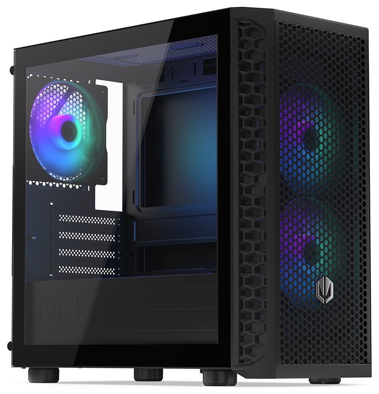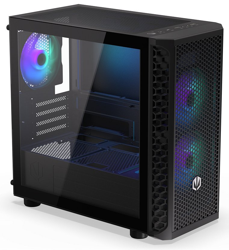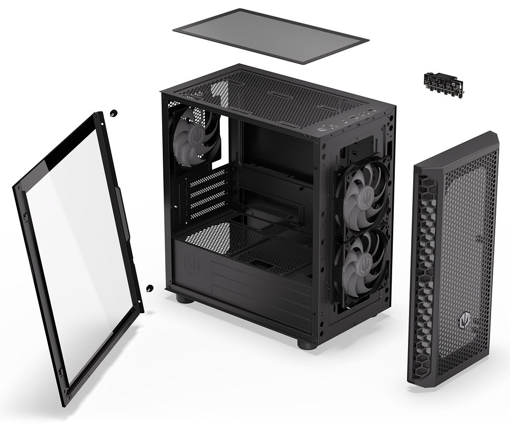 Moderní vzhled dotváří prosklená boční stěna z tvrzeného skla pro prezentaci sestavy a ARGB podsvícení s přiloženým kontrolérem. Skříň nabízí prostor pro grafické karty do délky 345 mm, CPU chladiče do výšky 159 mm a vodní chlazení s až 240mm radiátory. Magnetické prachové filtry a přední mesh panel lze snadno vyjmout a vyčistit.