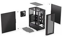 Skriňa formátu Middle Tower ponúka dve 2,5 "pozície pre SSD disky a jednu 3,5" pozíciu pre pevný disk. Na hornej časti sa nachádzajú dva USB 3.0 porty, slúchadlový výstup a audio vstup pre mikrofón. Vybavená je jedným 120 mm ventilátorom, ktorý spolu s perforovaným čelným panelom zaisťuje dostatočné prúdenie vzduchu. Dômyselné riešenie umožňuje pohodlné umiestnenie až 360 mm dlhého výmenníka vodného chladenia na prednej strane. V skrini je dostatok priestoru pre chladič CPU do výšky až 161 mm a grafickú kartu s dĺžkou až 315 mm. Dodávaná je bez zdroja. Súčasťou je aj sada prachových filtrov.