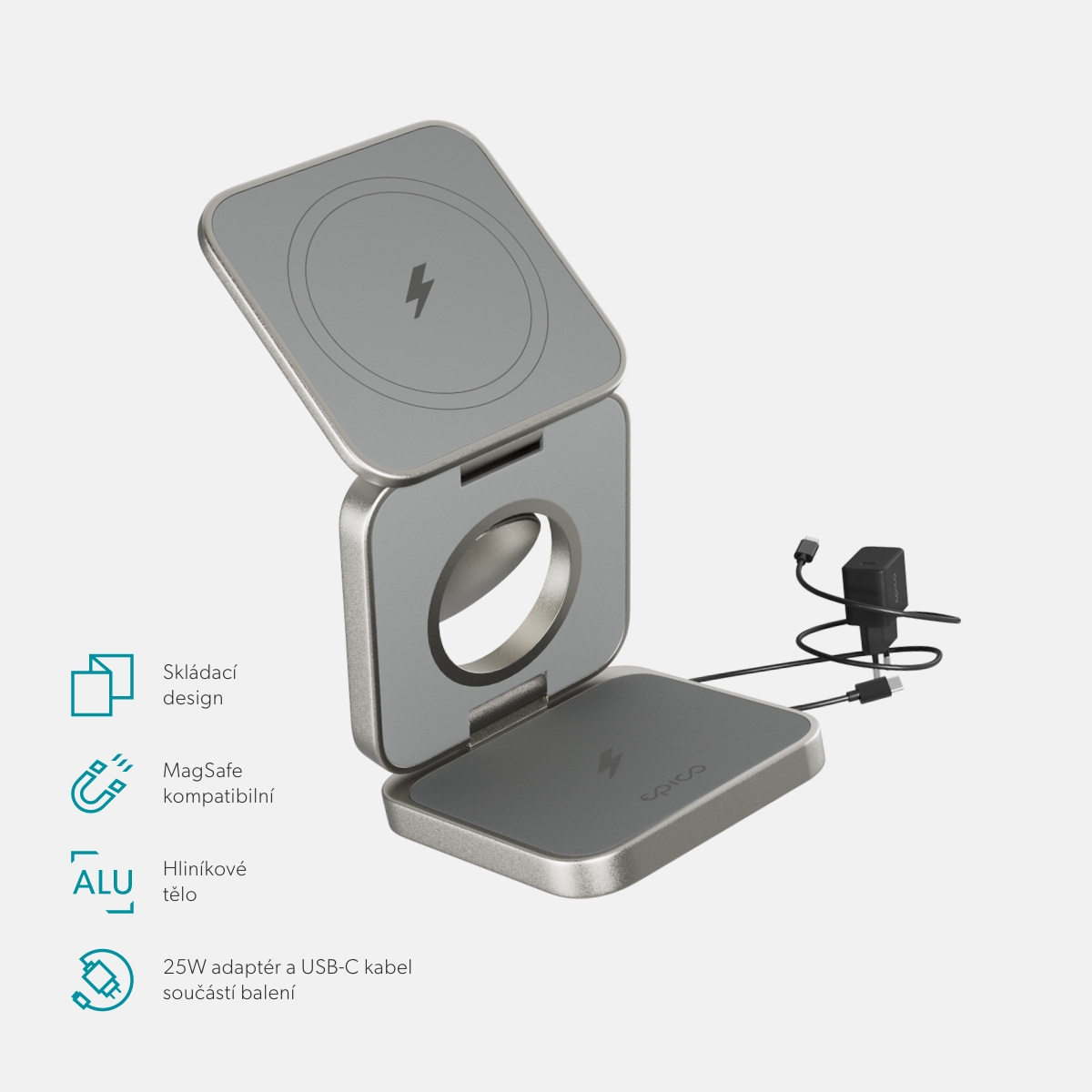 EPICO UltraBase EF45 3in1 Fold Alu Mag+ Charging Stand - titanová 9915112100087