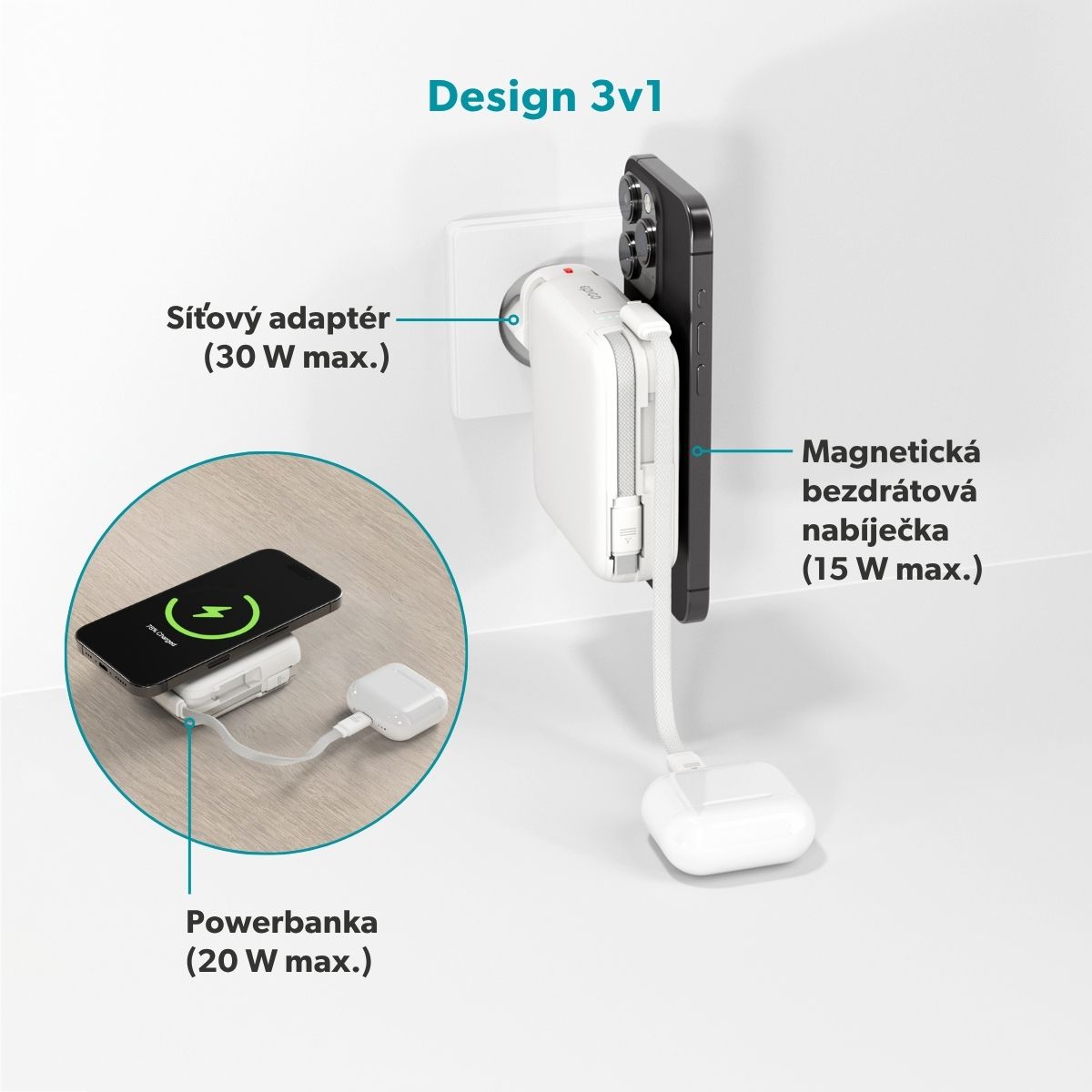 Powerbanka, nabíječka a adaptér v jednom Epico UltraPack 3in1 ET50 představuje praktické řešení pro každodenní nabíjení i cestování. Spojuje powerbanku, bezdrátovou nabíječku a síťový adaptér do jediného kompaktního zařízení. S kapacitou 10 000 mAh zaj...
