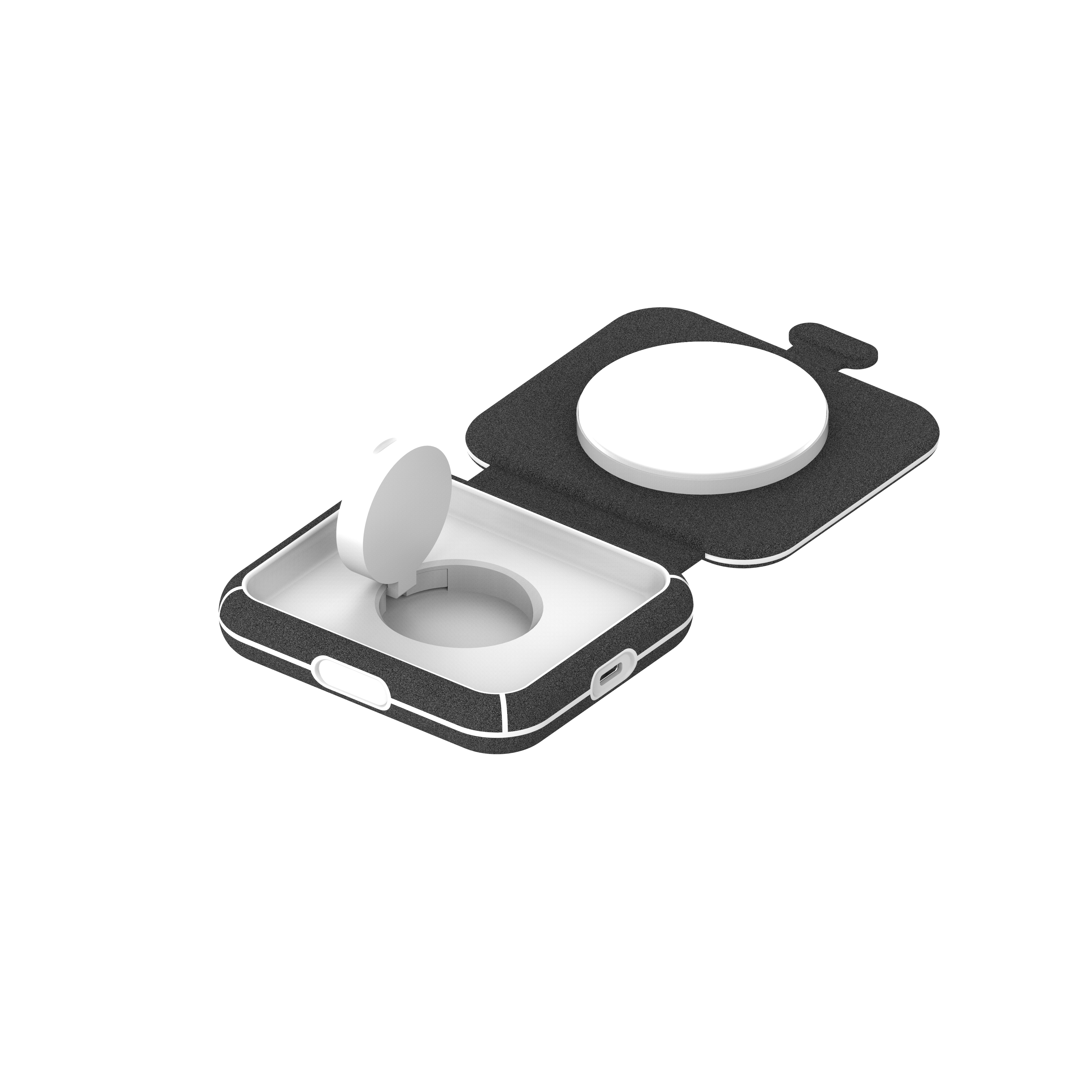 Bezdrôtová, skladacia MagSafe nabíjačka 2-v-1 - umožňuje pohodlné a efektívne nabíjanie - ideálne na cestovanie vďaka skladaciemu systému - nabíja 2 zariadenie naraz pomocou MagSafe a Qi technológie - integrovaný USB-C konektor - kábel USB-C / USB-C je dlhý 2 m - certifikácia MFW pre Apple Watch Technické parametre: - výkon pre smartfón - 15W - výkon pre Apple Watch - 3W