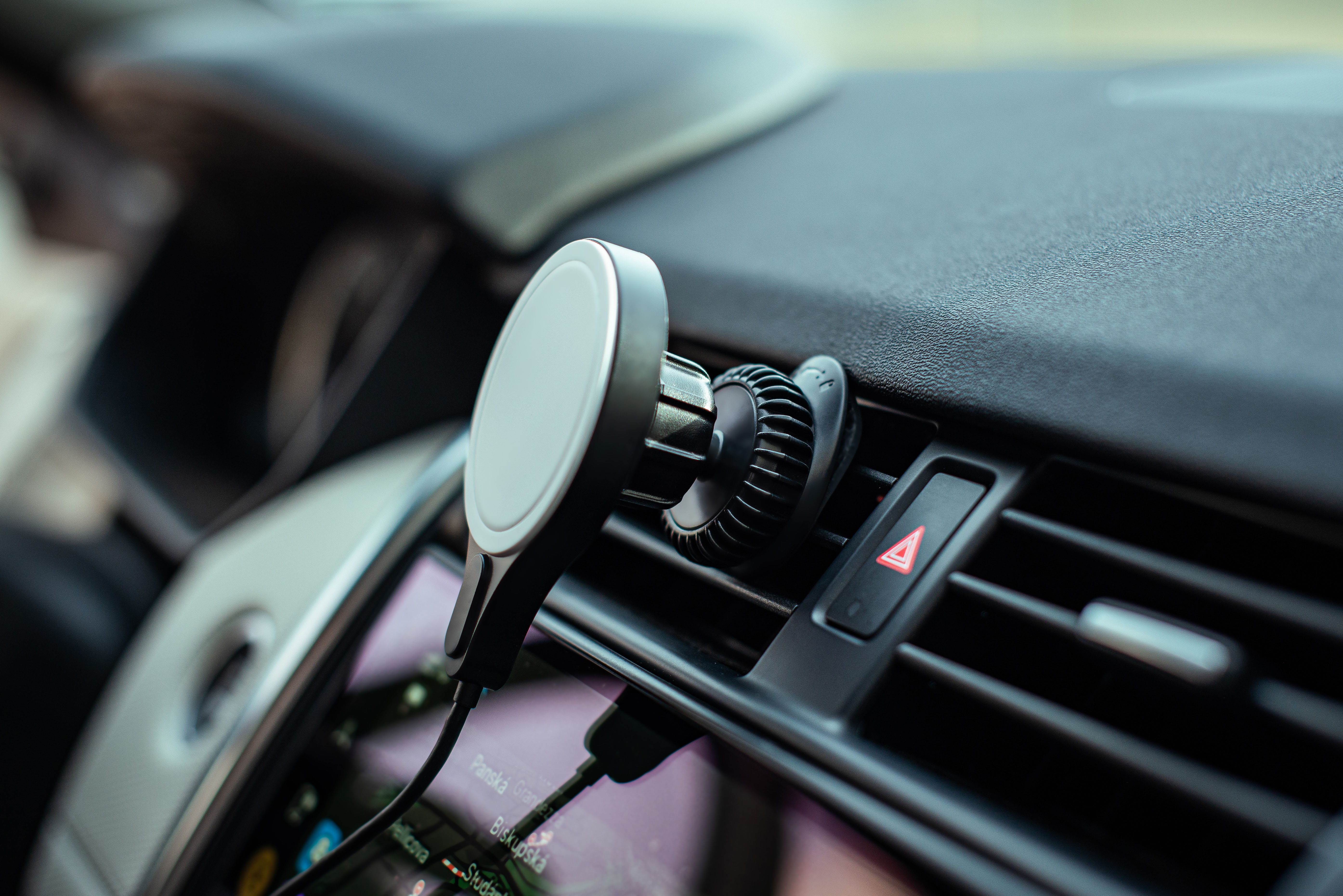 Držiak na iPhone do auta s MagSafe - účinné a komfortné nabíjanie - ľahké pripevnenie držiaku do ventilačných mriežok - prichytenie smartfónu pomocou technológie MagSafe - zariadenie je pevne na svojom mieste, vďaka silným magnetom - umožňuje vodorovné aj zvislé nabíjanie s výkonom 15W - držiak obsahuje USB-C kábel dlhý 1,5 m - kompatibilné s modelmi rady iPhone 12 a novšie a puzdrami s MagSafe