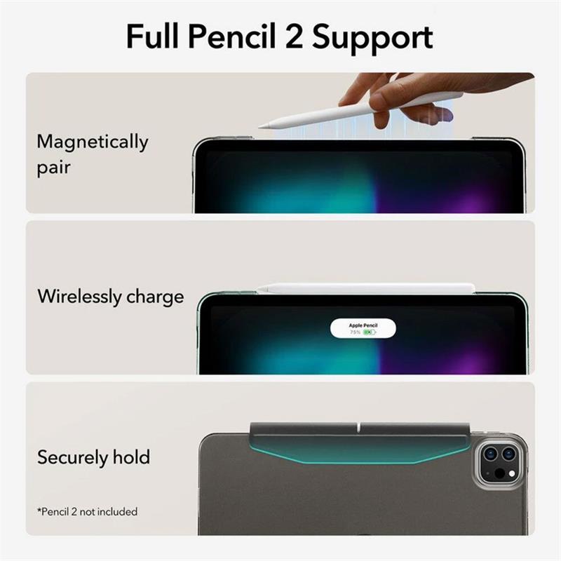 Ochranné puzdro pre iPad Pro 2024 - zadné puzdro s predným krytom pre ochranu zo všetkých strán - matná zadná strana odoláva odtlačkom prstov a poškriabaniu - stojan sa dá prispôsobiť do 2 praktických polôh pre komfortné prezeranie a písanie - automatické zobudenie / uspanie pri otvorení / zatvorení iPadu - magnetická klapka chráni Apple Pencil pred poškriabaním - kompatibilné s Apple Pencil 2 a Apple Pencil s USB-C - presné výrezy pre porty a tlačidlá - určené pre iPad Pro 13" M4 2024