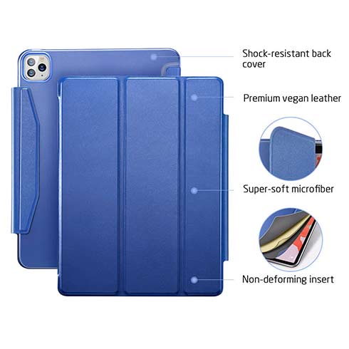 Ochranný kryt a stojan 2-v-1 pre iPad Pro - tenké, ľahké ochranné puzdro - magnetický držiak pre stylus Apple Pencil 2 gen. s podporou bezdrôtového nabíjania - špeciálne dizajnovaná bezpečnostná klapka s magnetom zabraňuje otváraniu krytu a vypadnutiu stylusu - vyrobené z kvalitnej vegánskej kože - mäkká vnútorná výplň z mikrovlákna - pevné magnety dovoľujú použiť puzdro ako stojan - 2 polohy stojanu pre čítanie a písanie - ochrana vášho iPadu pri náraze či páde - funkcia automatického uspatia/zobudenia zariadenia pri zatvorení / otvorení puzdra - čiastočne priehľadná zadná časť krytu - jednoduchý prístup k portom a všetkým funkciám iPadu - určené pre iPad Pro 11'' (2020)