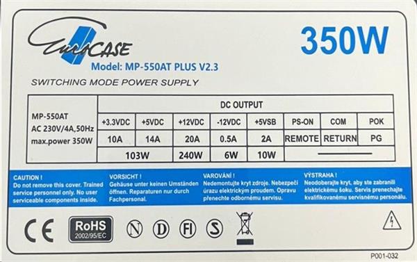 Eurocase ATX-350W 350 W; Napájecí zdroj je osazen tichým 120 mm ventilátorem. Účinnost zdroje splňuje certifikaci 80+. ZÁKLADNÍ SPECIFIKACE; Výkon: 350 W; Velikost ventilátor...