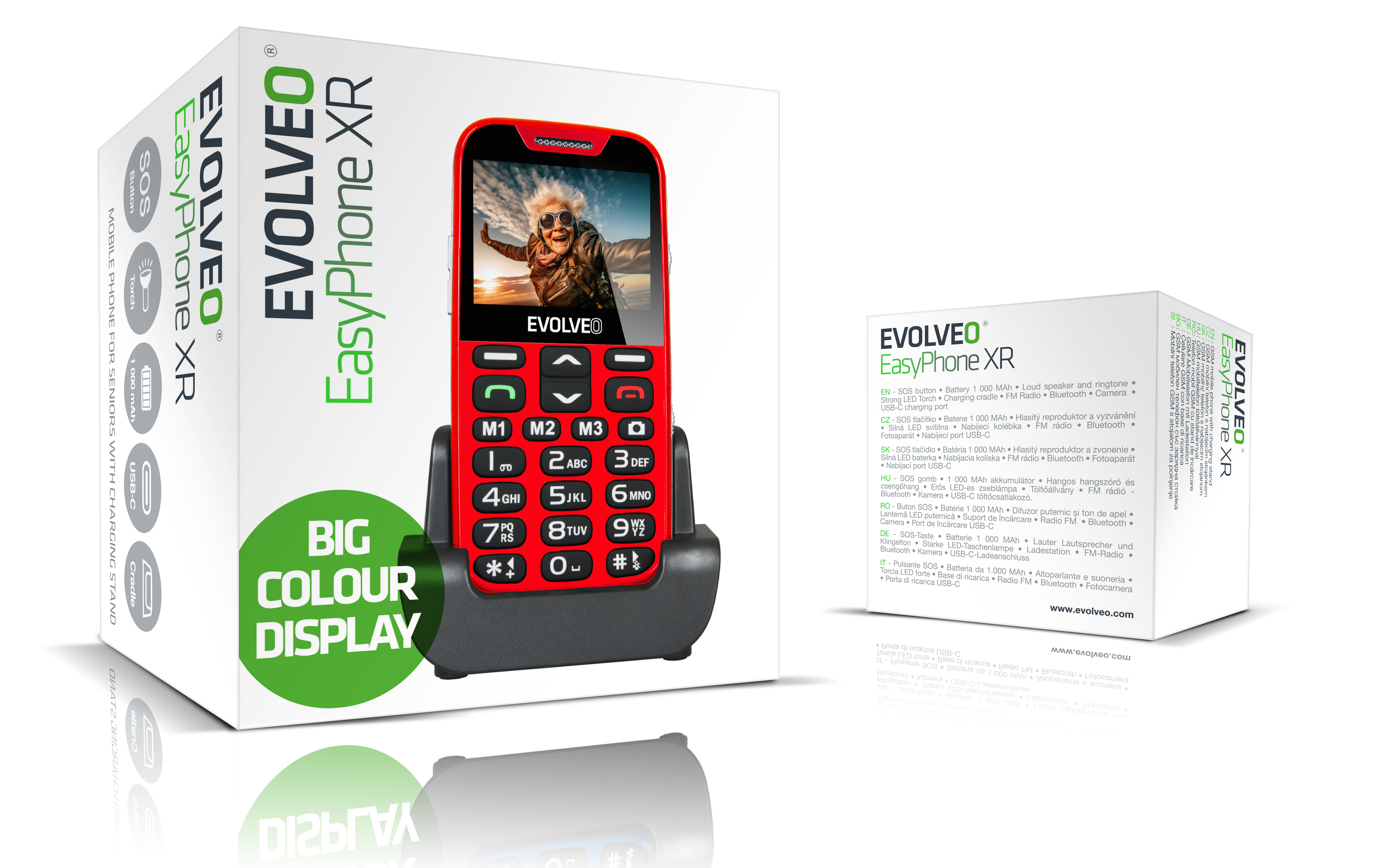 EVOLVEO EasyPhone XR, telefon pro seniory s nabíjecím stojánkem, 2,3" 320 x 240/1xSIM/0,3Mpx/microSDHC/1000 EP-601-XR-RD