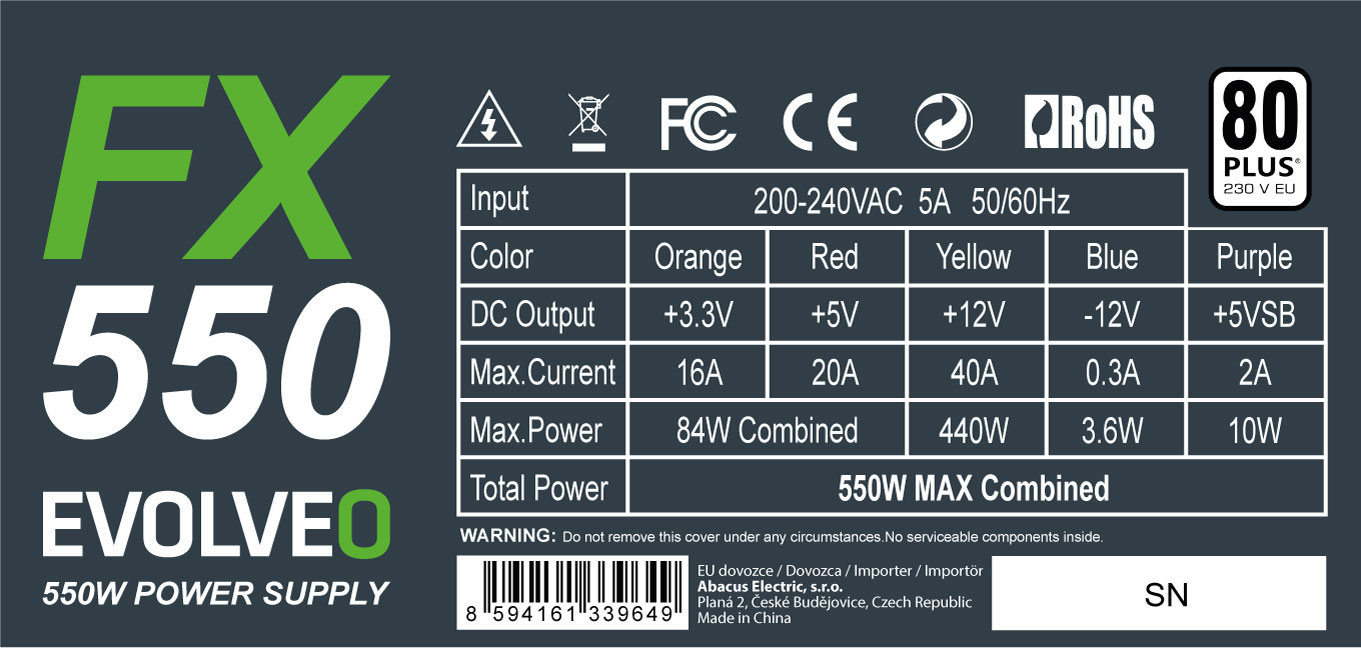 EVOLVEO FX 550 , zdroj 550W ATX, 14cm, tichý, 80+, bulk czefx550