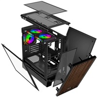 • EVOLVEO Panthera, skříň mATX, 3x ARGB ventilátor 120mm, dřevěný přední panel + skleněná bočnice PANTHERA-BK-3
