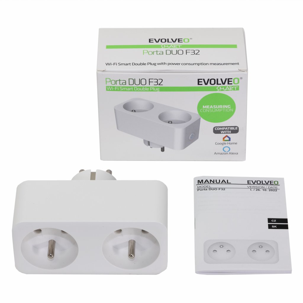 EVOLVEO Porta DUO F32, chytrá Wi-Fi dvojzásuvka s měřením spotřeby PORTA-DUAL-F32