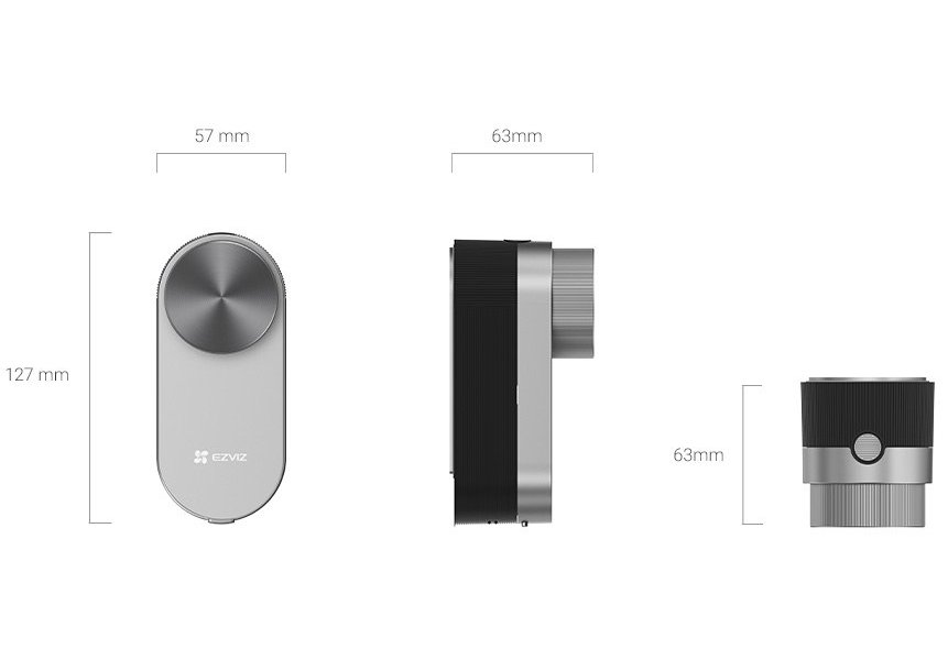 Retrofit chytrý zámek s DIY instalací bez vrtání. Bluetooth ovládání přes telefon, auto-lock, upozornění na otevřené dveře, režim soukromí. Hliníkové provedení, 4× AA baterie, kompatibilní s EZVIZ Connect.