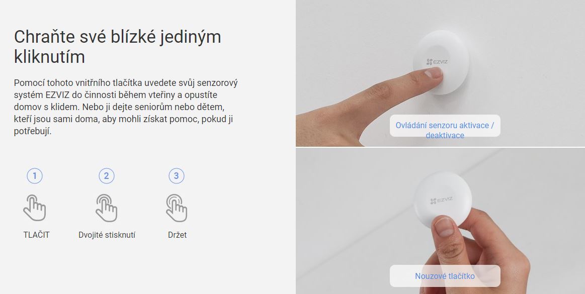 T3C Smart Button - Vyžaduje použití s EZVIZ Home Gateway A3 Kromě aplikací nebo hlasového ovládání můžete nyní pomocí tohoto jednoduchého chytrého tlačítka zapínat a vypínat celý senzorový systém EZVIZ nebo jej stisknutím odeslat nouzový poplach. Má ma...