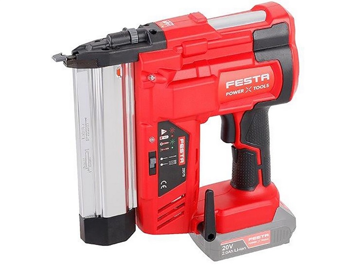 Sponkovačka - hřebíkovačka AKU FESTA 2 v 1 (bez baterie a nabíječky).Frekvence nastřelování 60 - 100 min-1, doporučená maximální délka spon / hřebíků 50 mm (30 mm do tvrdých materiálů), hmotnost bez baterie 2.7 kg.