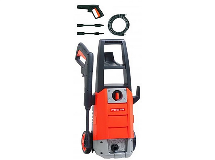 Čistič vysokotlaký 1500 W, FESTA.napětí: 230 V / 50 Hz , příkon: 1500 W , max. tlak: 120 Bar , pracovní tlak: 80 Bar , průtok vody: 6 l / min.Připojení vody standardním adapterem na rychlospojku. Délka tlakové hadice 5 m (lze objednat samostatně), délka napájecího kabelu 5 m