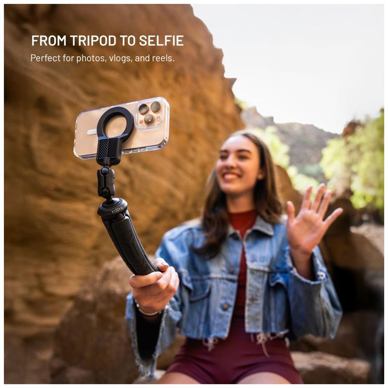 Flexibilný statív FIXED Creator je ideálny pomocník na fotenie, natáčanie aj streamovanie kdekoľvek v teréne aj doma. Spája odolnú konštrukciu s praktickým magnetickým držiakom na telefóny s podporou MagSafe. Nohy vystužené siedmimi oceľovými prameňmi je možné ľubovoľne ohýbať a pevne uchytiť na vetvu, zábradlie alebo iný povrch. Ľahko tak získate dokonalý záber aj na netradičných miestach. Pogumovaný povrch zaručuje maximálnu stabilitu a zabraňuje skĺznutiu na hladkom povrchu. Magnetický držiak s 20 silnými N52 magnetmi je plne kompatibilný s telefónmi vybavenými technológiou MagSafe alebo MagSafe krytmi a zaisťuje ich bezpečné a pevné uchytenie. Vďaka dvojitému kĺbu je možné otáčať telefón v plnom rozsahu 360 ° pre ten najlepší uhol. Po odobratí držiaka môžete využiť univerzálny 1/4" závit pre prichytenie kompatibilných fotoaparátov, akčných kamier či ďalšieho príslušenstva. Kompaktné rozmery a nízka hmotnosť neho robia univerzálny statív pre každého, kto chce tvoriť kreatívne zábery kdekoľvek a bez obmedzenia.