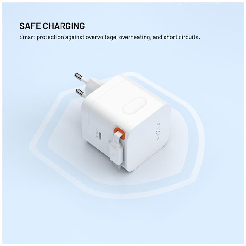 Kompaktná a výkonná sieťová nabíjačka FIXED s celkovým výkonom až 65W je ideálnym riešením na rýchle a efektívne nabíjanie všetkých vašich zariadení – od telefónu až po notebook. Vďaka pokročilej GaN technológii ponúka vysoký nabíjací výkon bez prehrievania a pritom si zachováva minimálne rozmery oproti bežným adaptérom s podobným výkonom. Nabíjačka je vybavená jedným USB-C portom s výkonom až 45W a navyše integrovaným samonavíjacím USB-C káblom s dĺžkou 64 cm, ktorý poskytne ďalších 20W. Kábel sa magneticky uchytáva k telu nabíjačky, aby sa nezamotal, neprekážal pri prenášaní a bol vždy pripravený na použitie. Samozrejmosťou je kompletná ochrana proti prepätiu, prehriatiu a skratu. Či už ste doma, v kancelárii alebo na cestách majte praktickú a spoľahlivú nabíjačku stále po ruke.